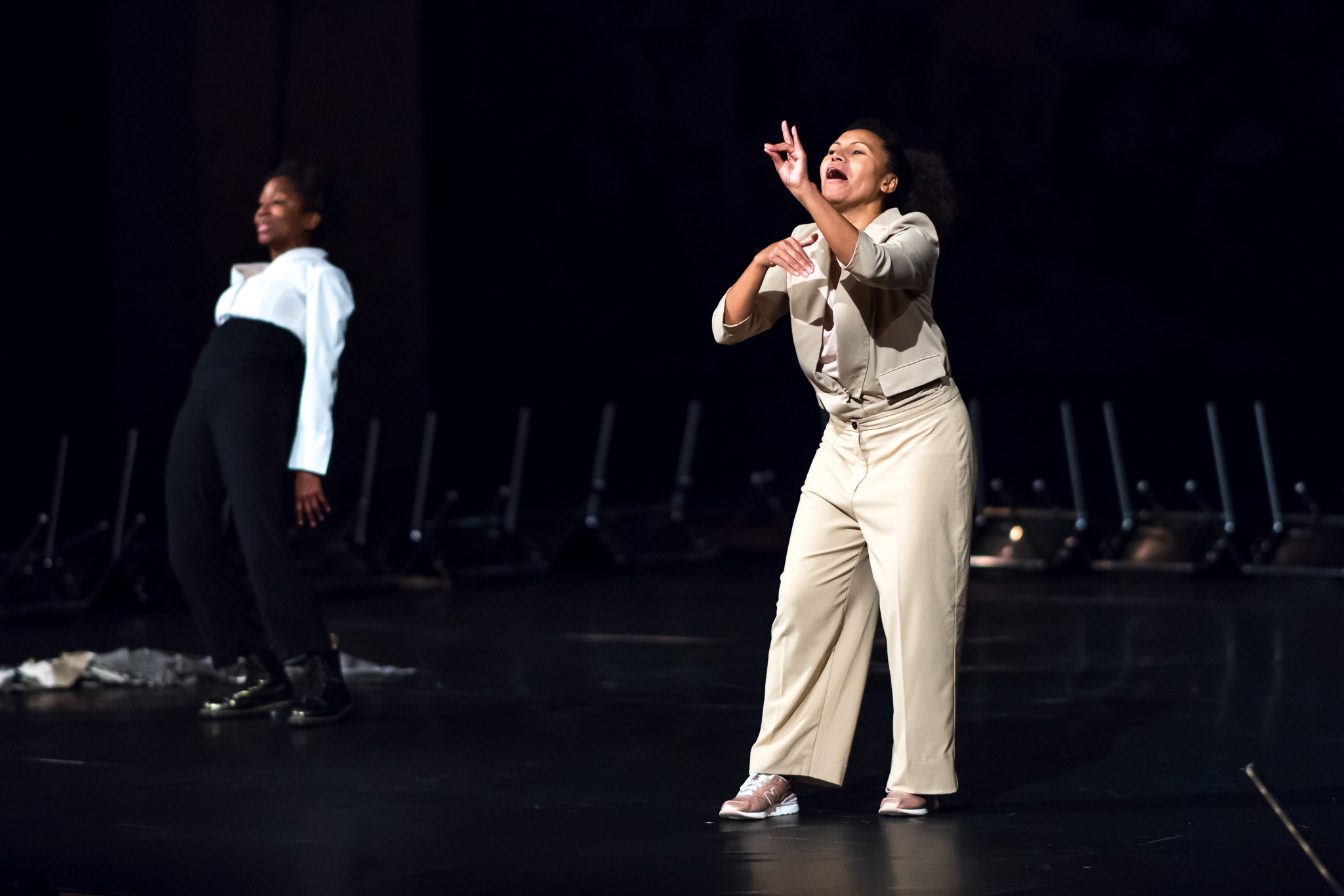In collaboration with dancer/interpreter Nelly Célérine and French sign language coach Carlos Carreras, Kamuyu re-created the choreographic tapestry of An Immigrant’s Story. Together they created the work’s choreo-sign language by fusing the gestural vocabulary of sign language and the already existing movement languages of the piece.