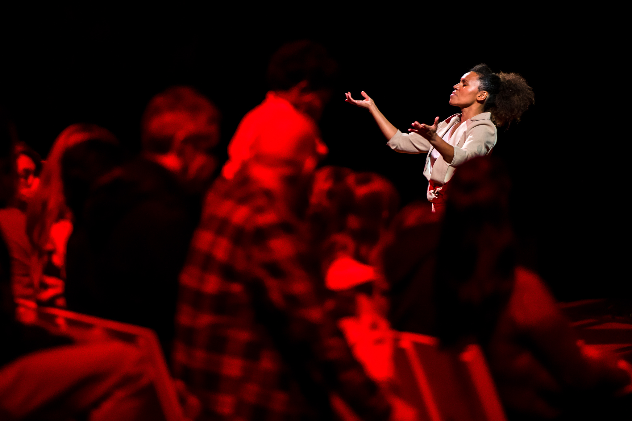 The performance ideally is preceded by an immersive workshop to acclimate the attendees to the work’s sensorial environment.